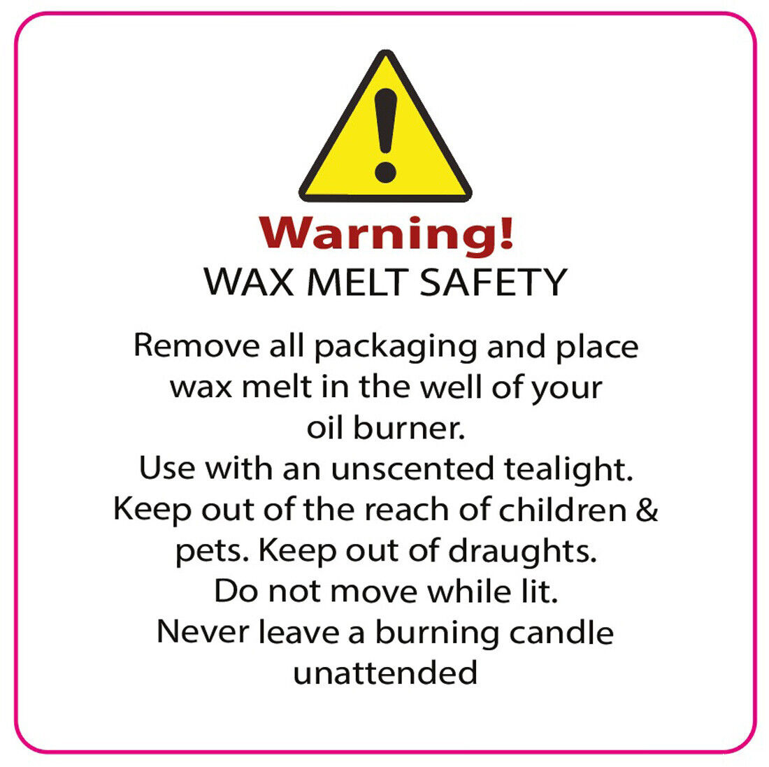 Free Printable Wax Melt Warning Labels – There’s nothing quite like the cozy feeling of walking into a room that smells of your favorite scent. Wax melts are a popular way to add fragrance to your home, and now you can make them even more special with personalized labels. Adding a personal touch to your wax melts not only makes them look more appealing but also allows you to show off your creativity.