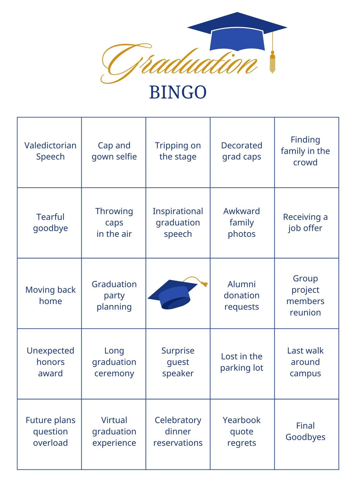 Not only does Graduation Bingo provide entertainment for your guests, but it also serves as a unique keepsake for your grad to cherish for years to come. Imagine looking back on the bingo cards filled with memories from their special day and reminiscing about the fun and laughter shared with loved ones. Graduation Bingo adds a personal touch to your celebration, making it a truly unforgettable experience for your grad and their guests.