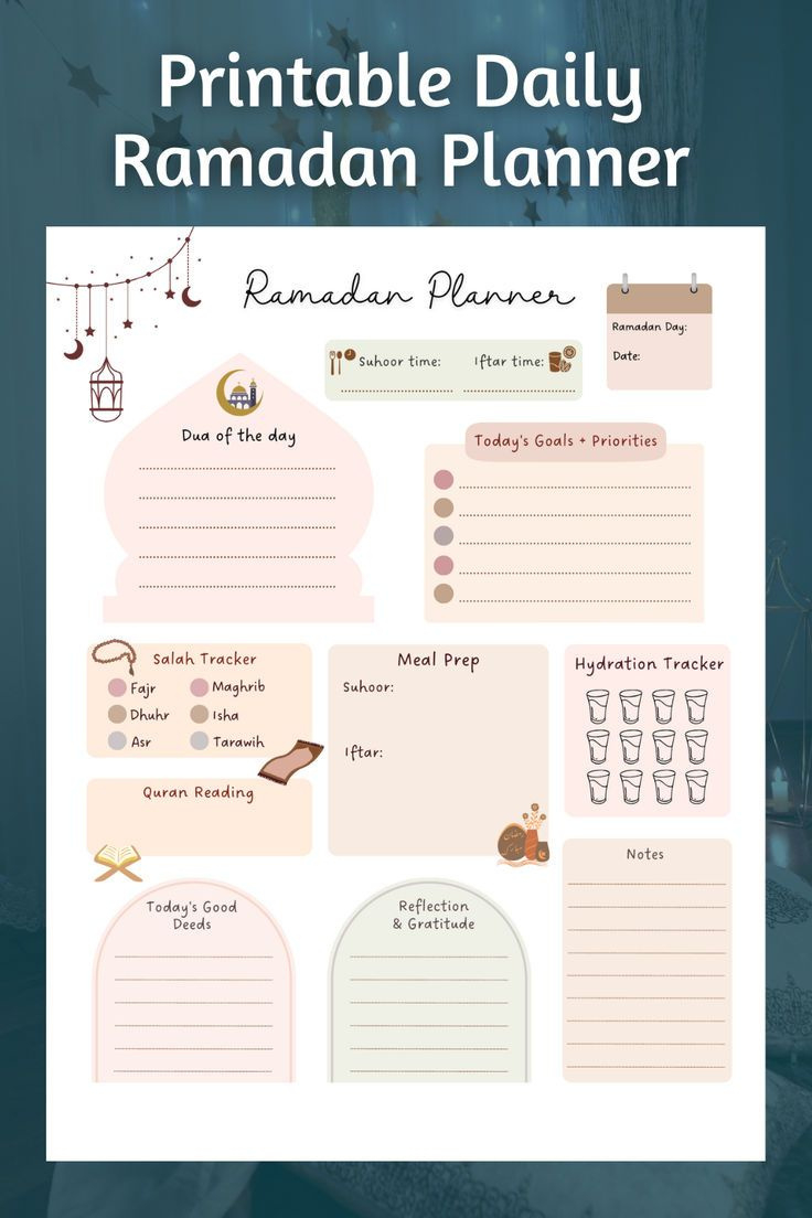 Stay organized and festive during Ramadan 2025 with your Printable Planner. Prepare yourself for a month of spiritual growth, reflection, and community by setting your intentions and goals for the month ahead. Decorate your space, plan your iftar meals, and engage in acts of kindness with the help of your planner. Stay focused, motivated, and inspired throughout Ramadan by utilizing your planner as a tool for self-improvement and well-being. Make the most out of this sacred month by staying organized, festive, and connected with your 2025 Ramadan Printable Planner!