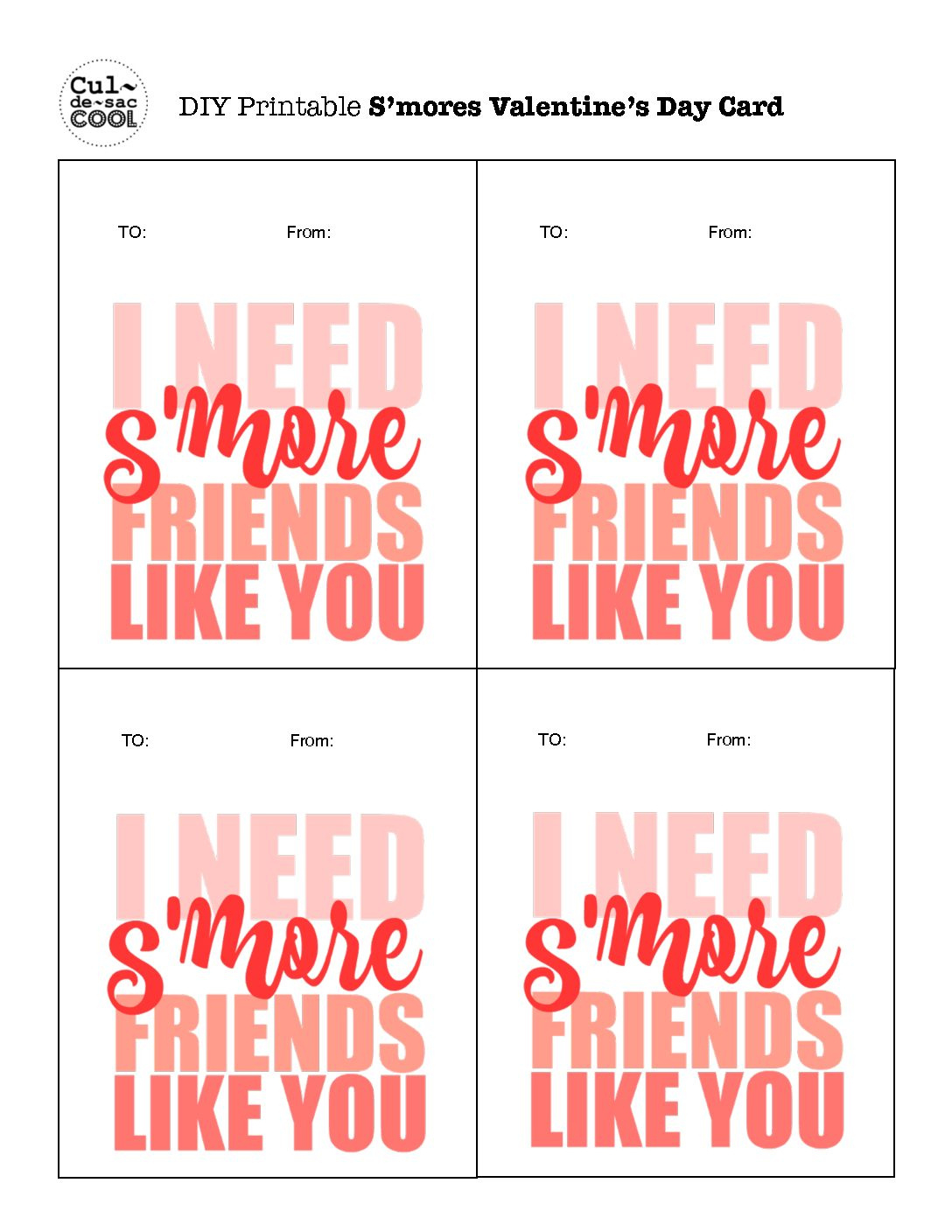 Free Printable S’more Love Valentines
