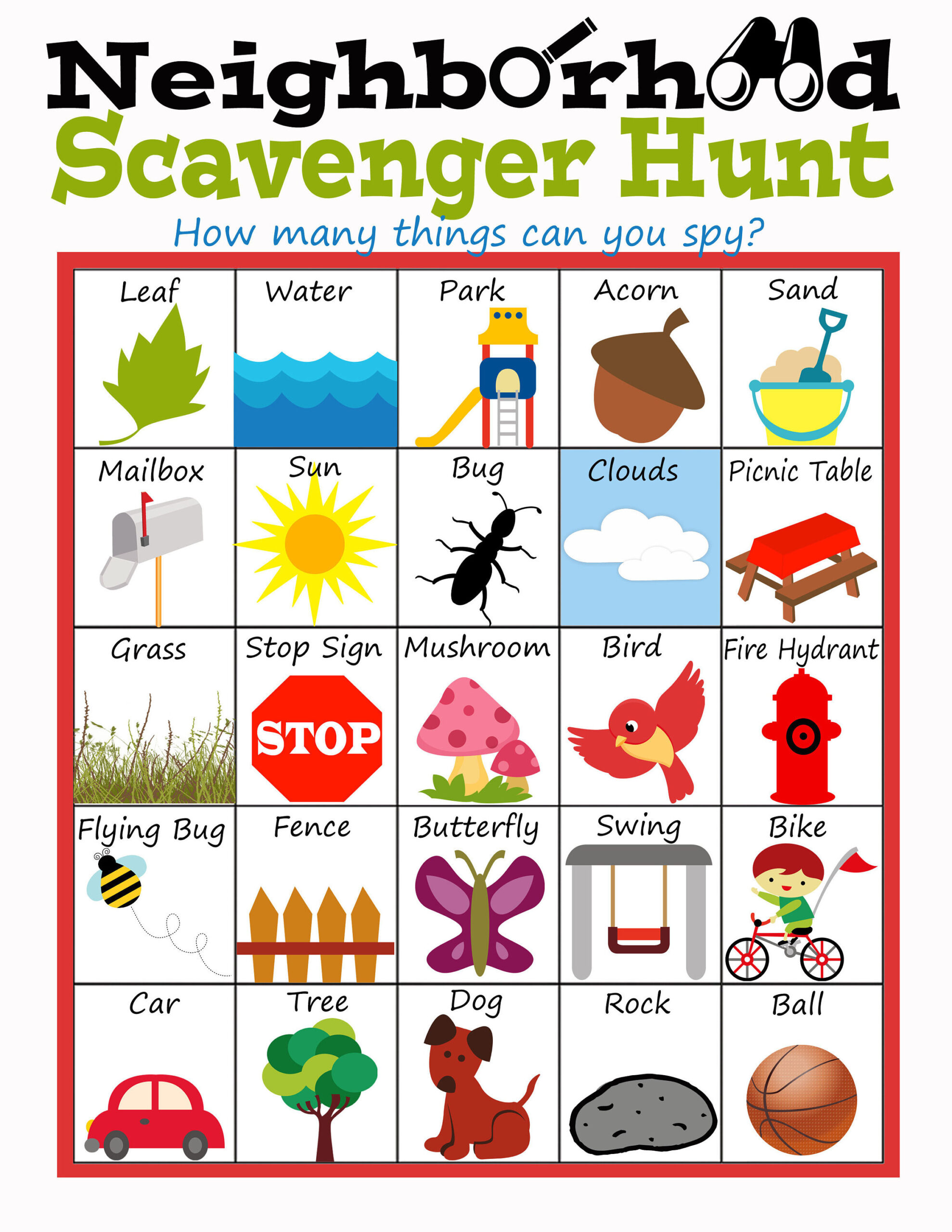 With Scavenger Hunt Bingo, you can explore your surroundings in a whole new way, whether you’re in your own neighborhood, a bustling city, or a scenic park. The game provides you with a list of items to find and mark off on your bingo card, challenging you to keep your eyes peeled for everything from a red mailbox to a squirrel in a tree. It’s a great way to get outdoors, exercise your observational skills, and have a blast with friends and family.