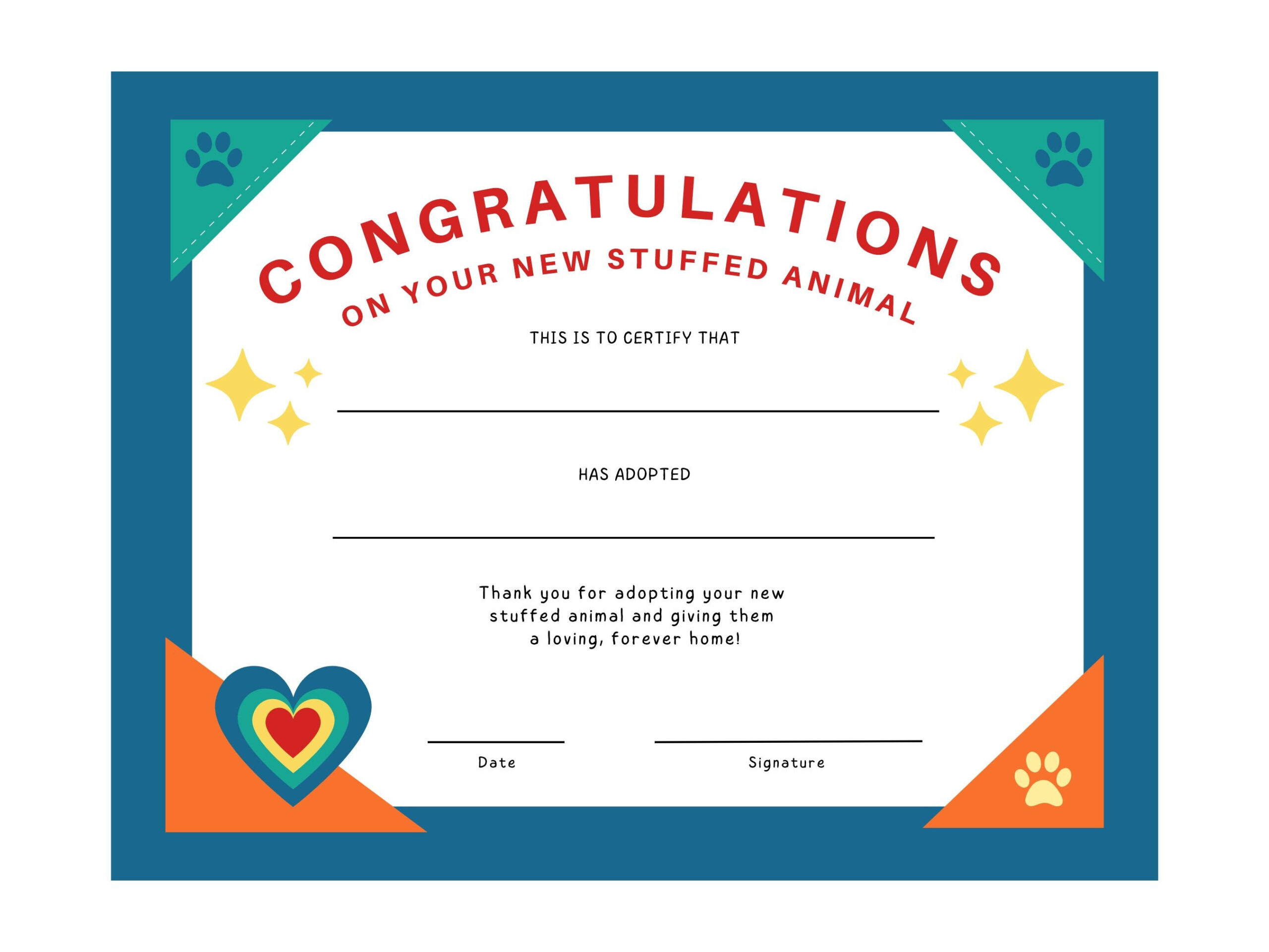 Bringing home a new stuffed animal friend is a special moment that deserves to be celebrated. With our free printable adoption certificate, you can make the occasion even more memorable by giving your new furry friend a name and a place in your heart. So snuggle up with your new stuffed animal companion today and enjoy all the love and joy they bring into your life!